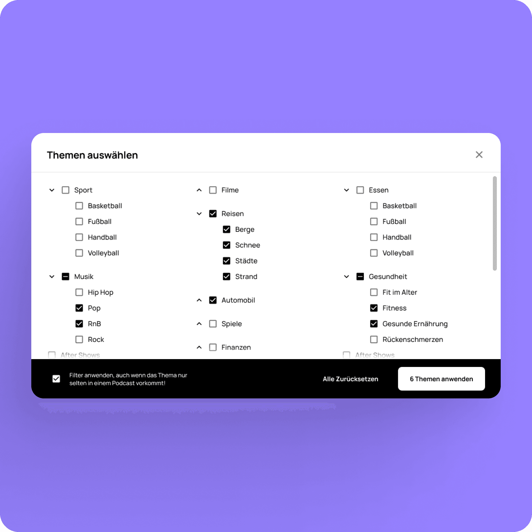 Im Kern von Allcasts ist unser eigens entwickelter Algorithmus, der von uns mit > 100.000 von Hand annotierten Episoden trainiert wurde.